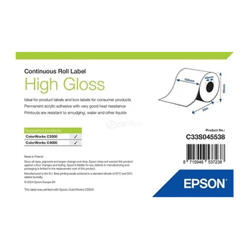Epson lesklé papierové, kontinuálne etikety, 102 mm * 33 metrové (objednávacie množstvo 18 kotúče/balík)