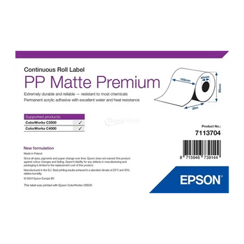 Epson matné, plastové (PP), kontinuálne etikety, 105 mm * 29 metrové (objednávacie množstvo 12 kotúčov/balenie)